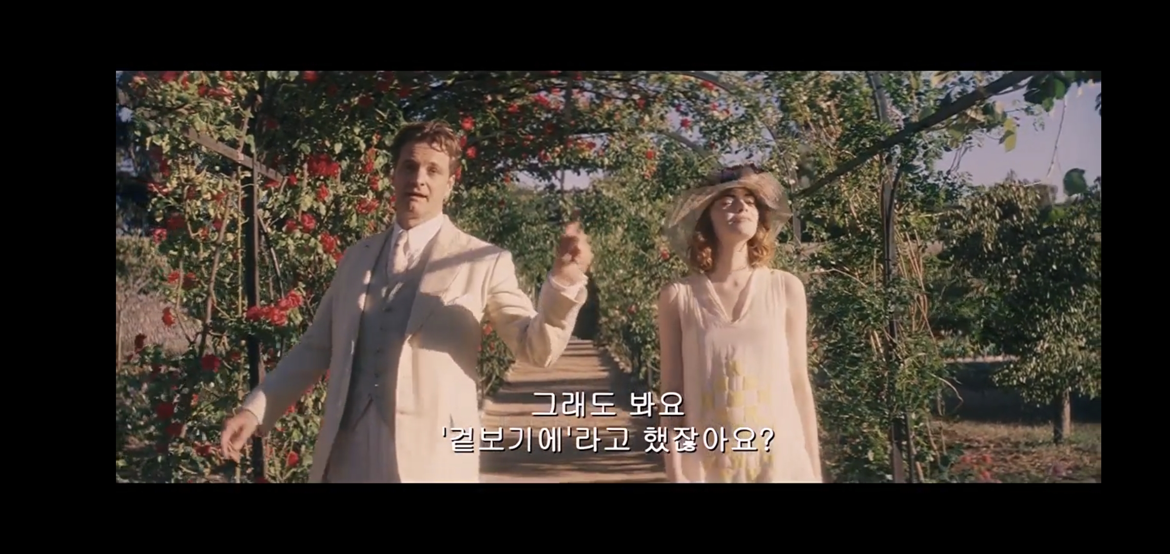 영화 속 정원의 모습에는 로맨틱한 요소도 있습니다. 사진에 보이는 장미덩굴 아치를 비롯해 정원의 수국, 작약... 과 같은 꽃의 얼굴이 큰 식재는 로맨틱한 분위기를 연출하는데 도움이 됩니다. 또한 자연스러운 식물의 성장을 보여주는 배식과 수목관리, 꽃의 풍부한 색채, 오래된 벽돌과 자갈 등의 재료, 자연스럽고 구불구불한 길, 수공간 등 자연스럽고 편안한 느낌의 정원 디자인은 보다 낭만적인 정원의 분위기를 연출합니다.