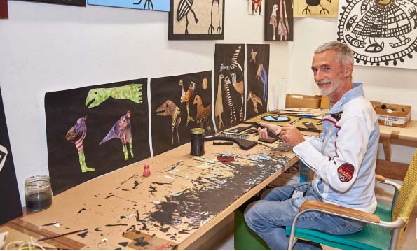 한스 랑그너는 멀티미디어 아티스트로서 회화, 오브제, 설치, 의상, 공연, 텍스트, 음악, 노래 및 디자인 분야에서 활동하였습니다. 하지만 2019년 몰타( Malta )에 있던 그에게 뇌출혈이 왔고, 그 이후 바트퇼츠(Bad Tölz)에 위치한 재활클리닉에서 치료를 받으며 힘겹게 살았습니다. 나중에 회복했지만, 오른손에 마비가 와서 왼손으로 그릴수 밖에 없었고, 오른쪽 눈의 시력도 많이 나빠졌습니다. 하지만 재활 중에도 그는 그림에 열중했고, 건강을 되찾으며 "예술이 나를 다시 건강하게 해 준 것"이라고 이야기했다고 합니다. 그는 재활시설에서 만난 목수의 도움으로 시설에 자신의 스튜디오를 꾸미고 처음 3개월 동안 300개 이상의 작품을 만드는 등 작업에 열중했습니다.