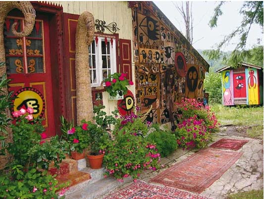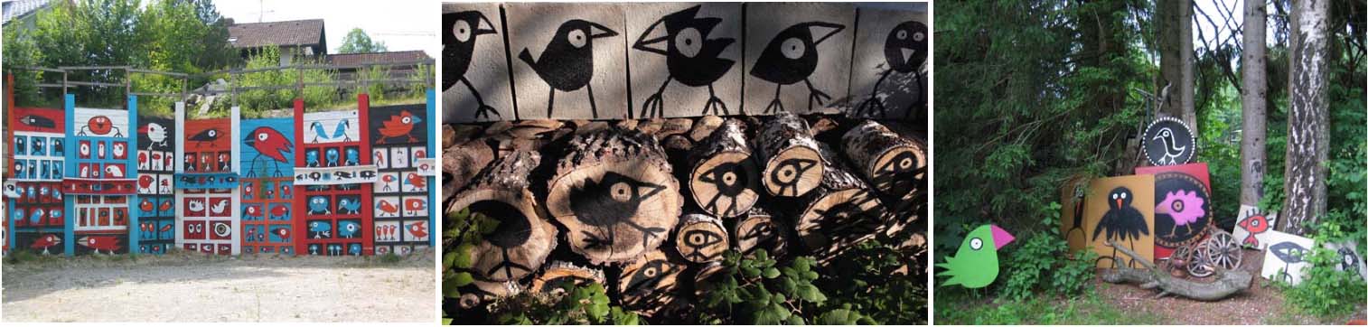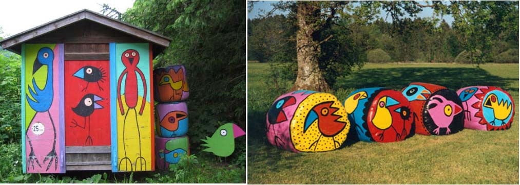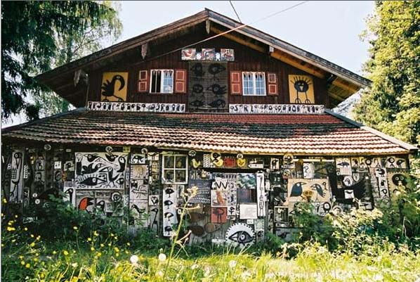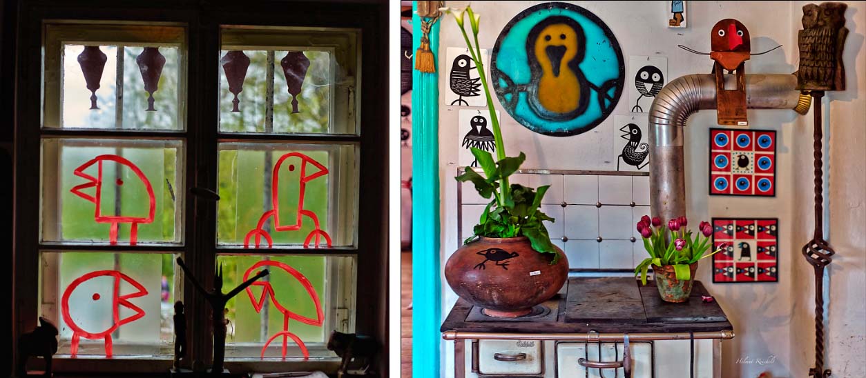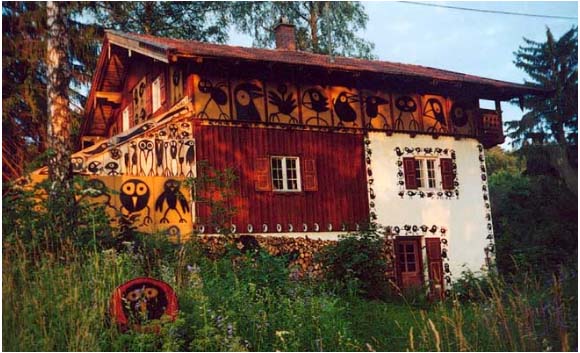 그는 그의 집을 이렇게 표현했다고 합니다. "나의 집은 나의 부화장이다. 단순함과 겸손, 그리고 만족을 가르쳐주는 나의 스승이다. 이곳은 내 운명의 장소이다. 내 집이고, 화실이고, 갤러리이고 미술관이다. 한마디로 나의 전부이다." 집 뿐 아니라 건물 주변 창고, 휀스 등에 새 그림이 가득합니다. 건초를 모아 싸 놓은 사료저장포대에 새 그림을 그린 것은 그 당시 많은 인기를 얻었다고 합니다.