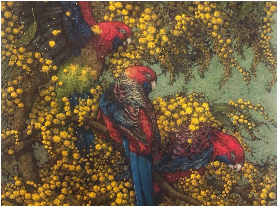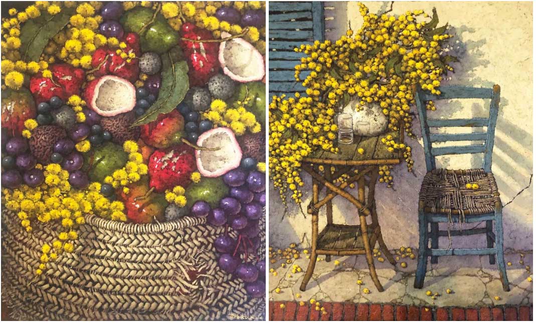 황금와틀에 대한 호주인들의 사랑은 현대 작가들에게도 이어집니다. 채식주의자이며 원예가이자 화가인 스테펜 트레빌콕(Stephen Trebilcock)은 일상의 환경을 직접적이고 친밀하게 묘사합니다. 그의 작품에 등장하는 아카시아를 통해 호주 사람들의 일상과 함께하는 아카시아나무 풍경을 느낄 수 있습니다.