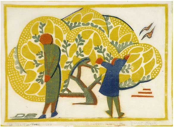 오스트리아의 여성화가이자 호주 모더니즘의 선구자라고 불리는 도릿블랙( Dorothea Foster Black)1891~1951 의 그림에도 호주아카시아가 등장합니다. 그녀의 작품은 모더니즘과 입체파 운동의 영향을 받아 대담한 기하학적 패턴과 조화로운 색상이 특징이며, 아카시아나무와 새, 사람이 단순화된 표현으로 묘사되어 있습니다. 호주인들의 아카시아에 대한 사랑을 느낄 수 있는 부분입니다.