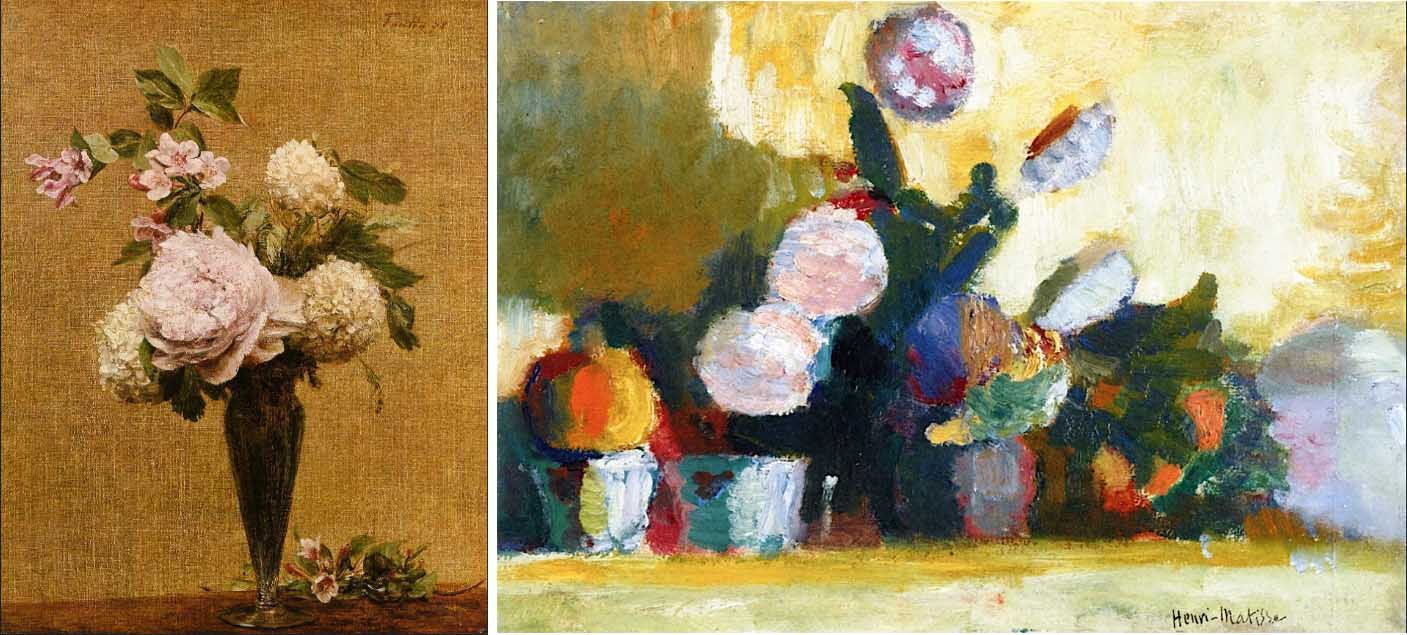 아래 그림은 프랑스화가 '앙리 팡탱 라투르(Henri Fantin-Latour) 1836~1904'와 '앙리마티스(Henri Matisse) 1869~1954'의 그림에 표현된 Snowballs입니다. 영명으로 'Snowball Tree'라 부르는 품종은 불두화(Viburnum opulus var. 'Roseum') 를 비롯하여 설구화(Viburnum plicatum), Viburnum carlcephalum, Viburnum Macrocephalum, Viburnum plicatum 'Grandiflorum' 등 다양하기에, 그림 속 Snowball이 어떤 품종인지 정확히 알 수는 없습니다. 하지만, Viburnaceae(산분꽃나무과), Viburnum(산분꽃나무속)에 해당하는 품종 중 하나일 것이다 정도로는 추측이 가능합니다.